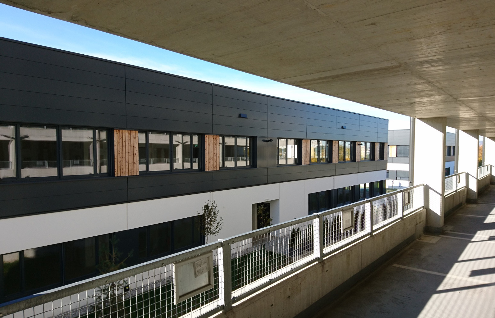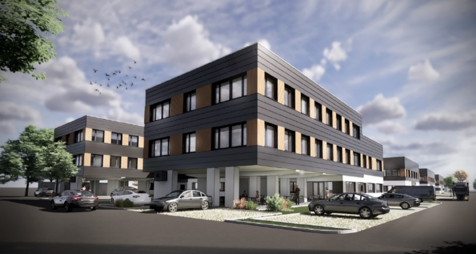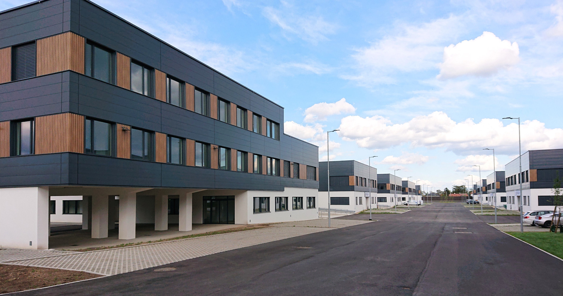 Sprinter vor dem Objekt und PKWs im Parkhaus